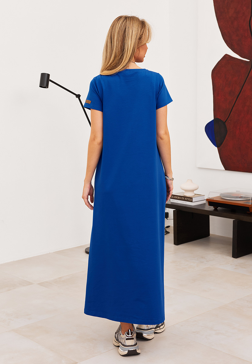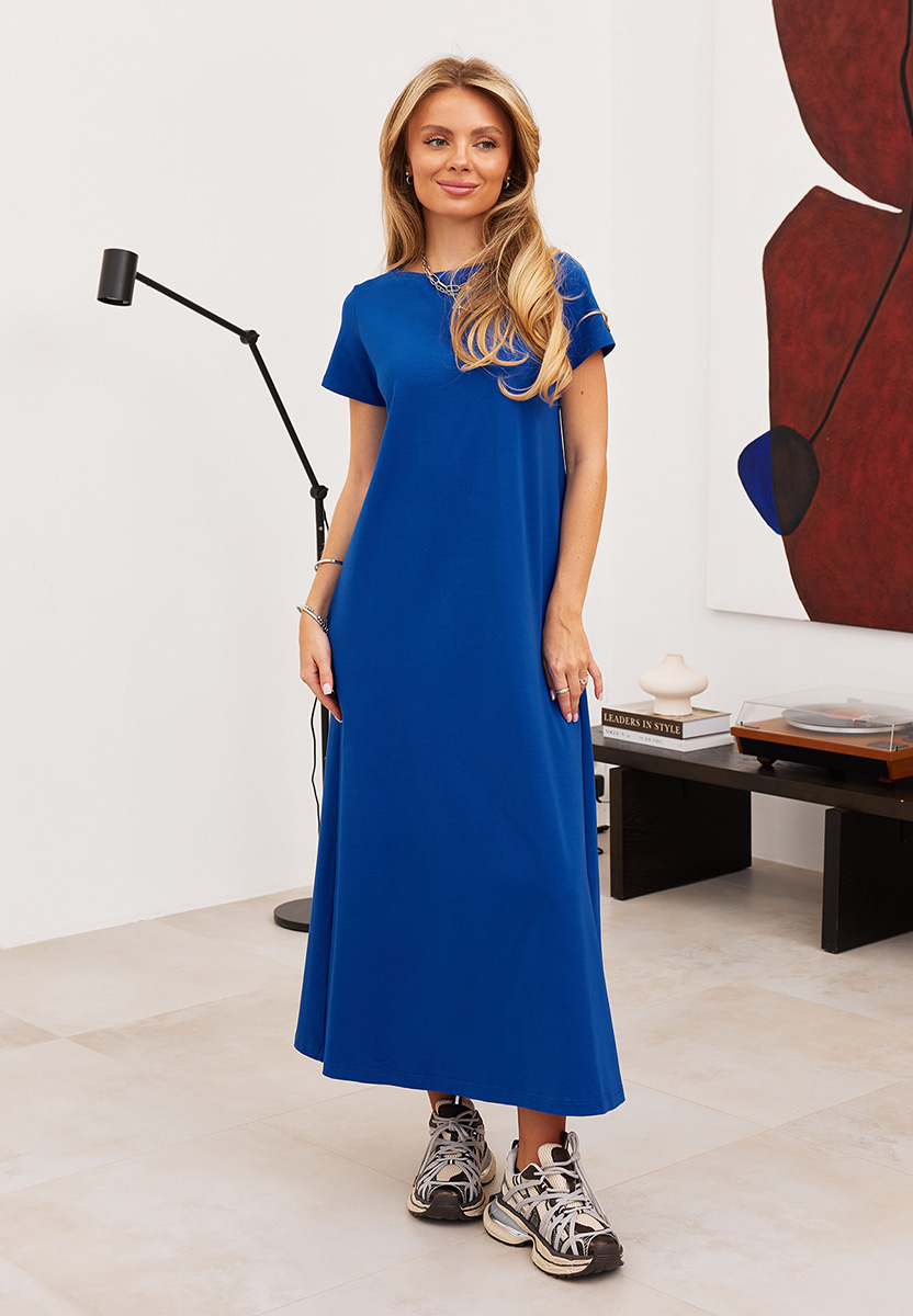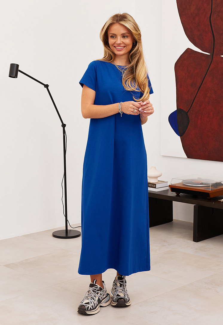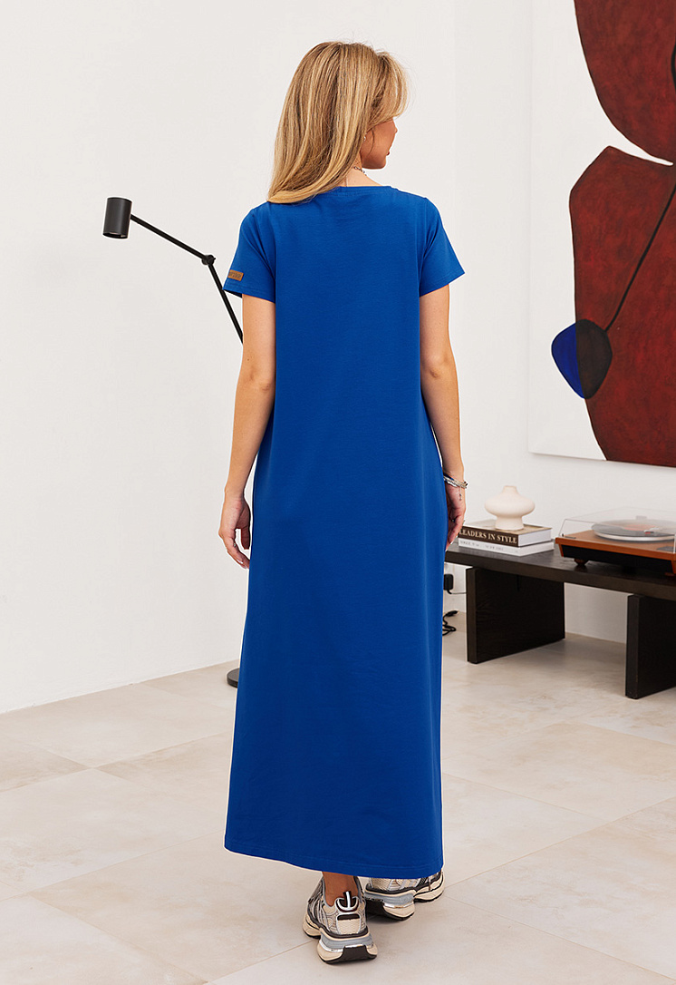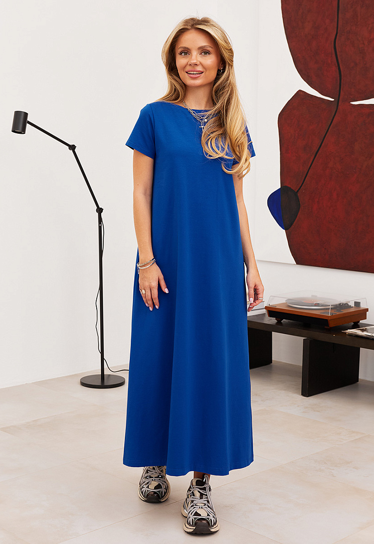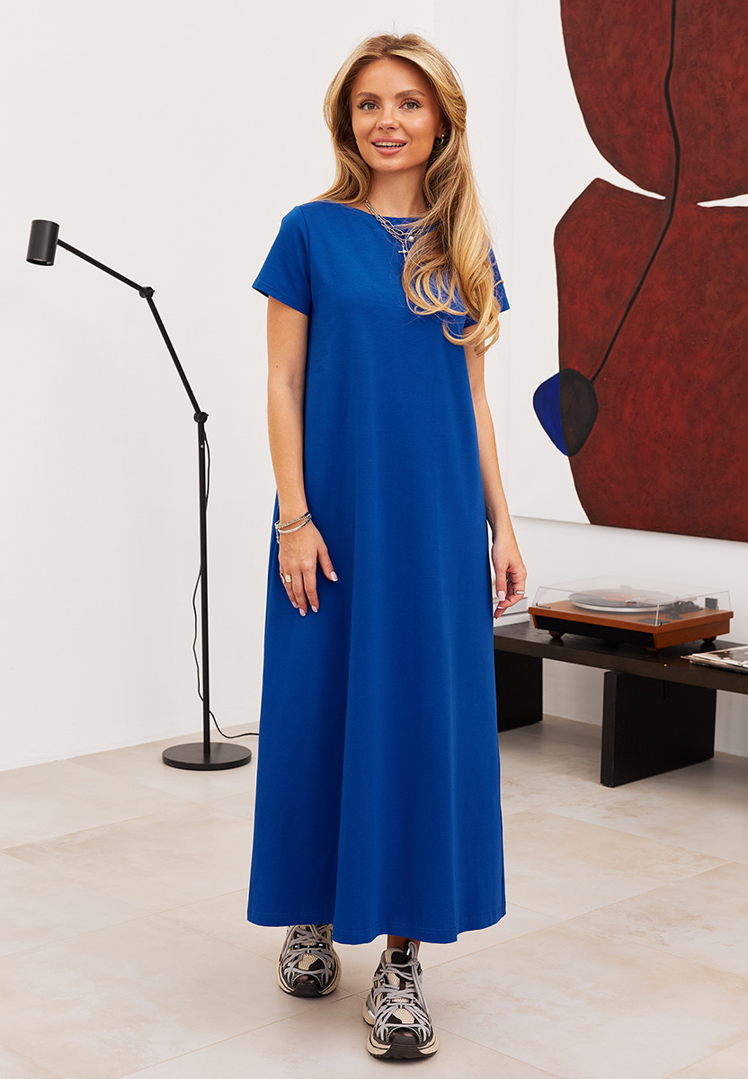 Детали: трапециевидный силуэт, длина макси, короткие рукава.