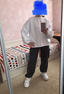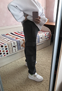 Очень приятные к телу штанишки, теплые и мягкие. На рост 168, ОТ 68 и ОБ 96 размер S. На фото вместе со свитшотом Weekend ( тоже графит, но немного отличается по интенсивности цвета).