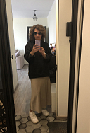 Заказанный размер М на параметры 95-80-104, рост-160 подошёл отлично, сидит свободно, в бедрах НЕ обтянула. Цвет шикарный, подходит ко всему. Приятная к телу, легкая и нежная!