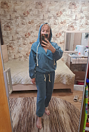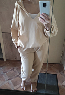 Худи взяла вместе с джоггерами. Костюм классный, мне очень нравится, самое главное в нём комфортно. В нём не останетесь без внимания)) Единственное быстро мнется.